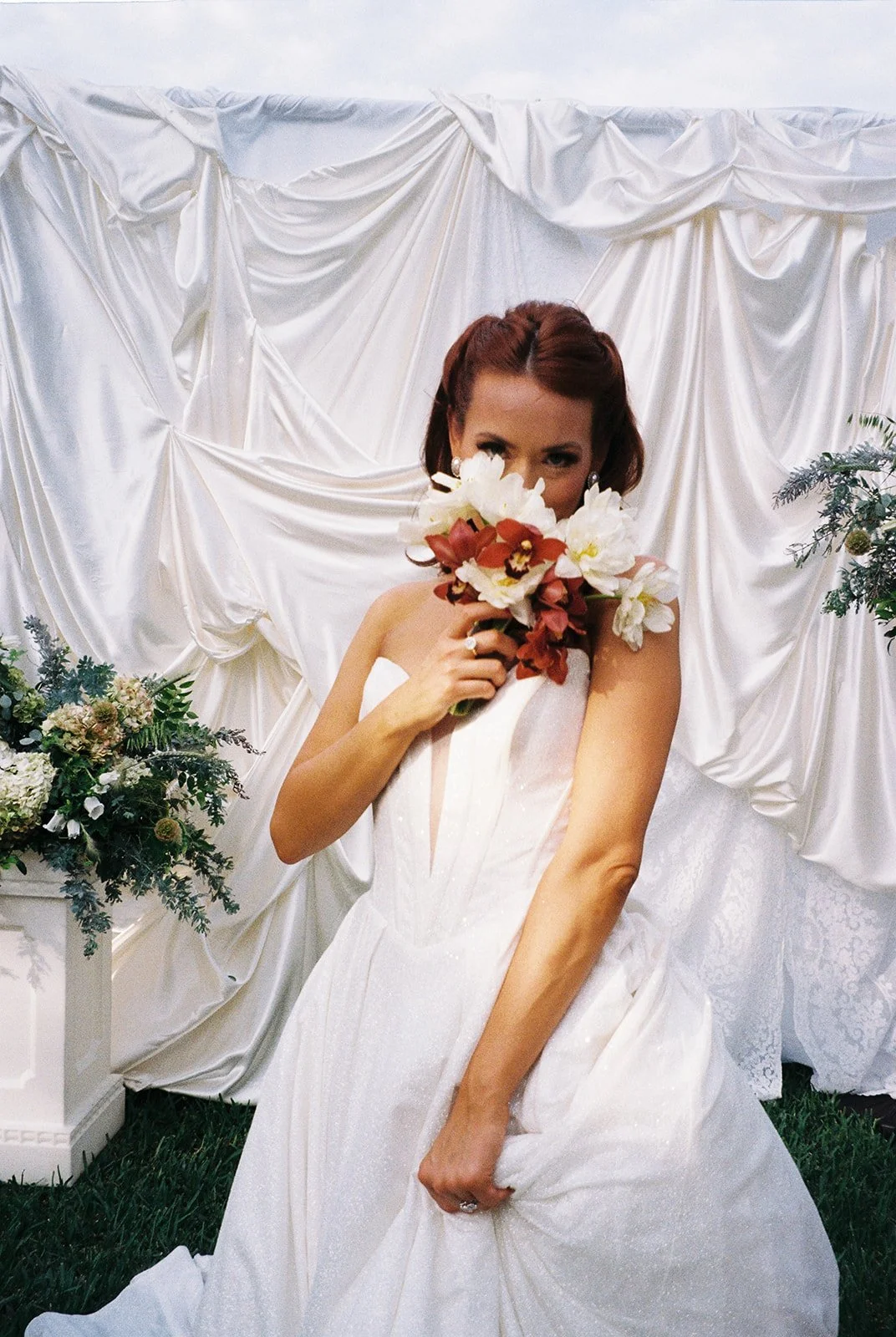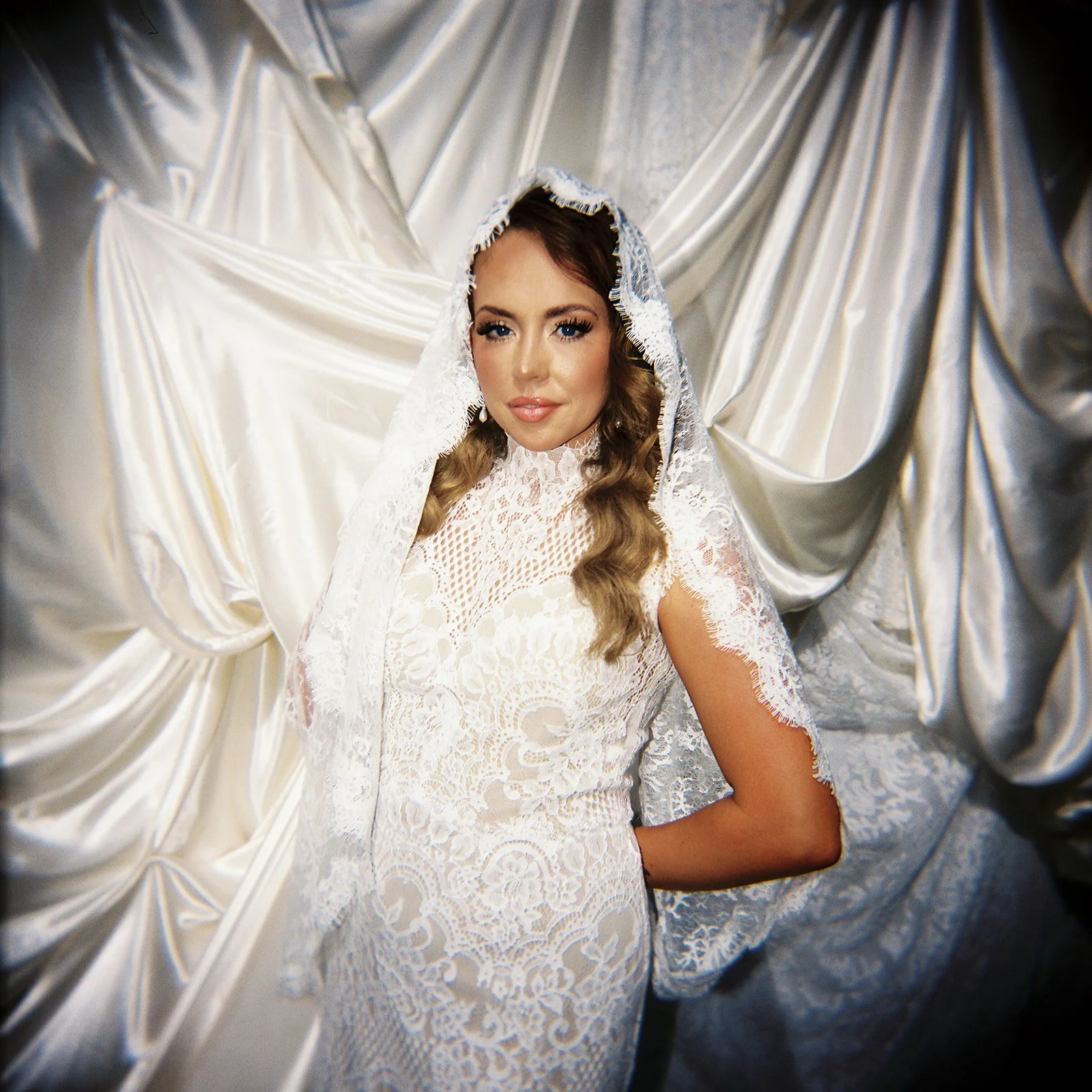 Captured on film, these portraits invite the viewer to pause, to notice the way light kisses silk, how stillness can be its own form of luxury.